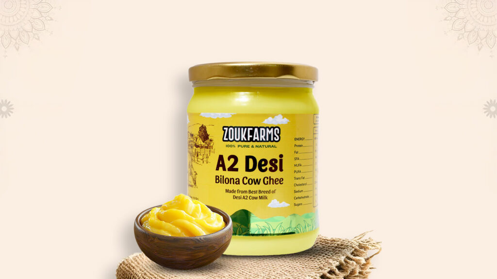 Experience the richness of traditionally made A2 Desi Ghee, crafted using the ancient Bilona method from pure A2 cow milk. ZoukFarms Ghee is 100% natural, chemical-free, and full of authentic aroma, taste, and nutrition — perfect for healthy cooking, daily meals, and a wholesome lifestyle.